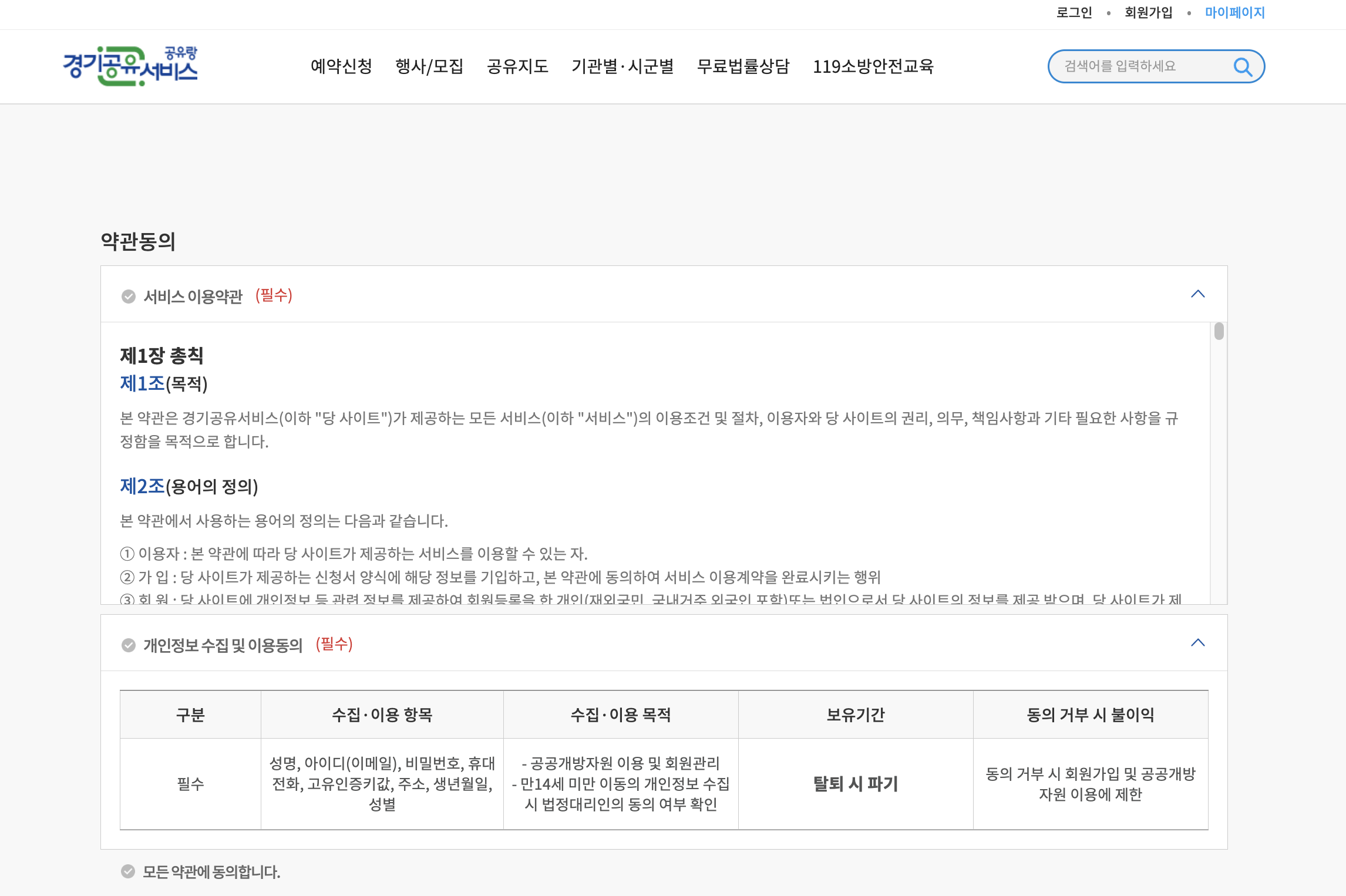 경기 공유 서비스 사이트에 접속하여 가입 후 로그인을 진행합니다.